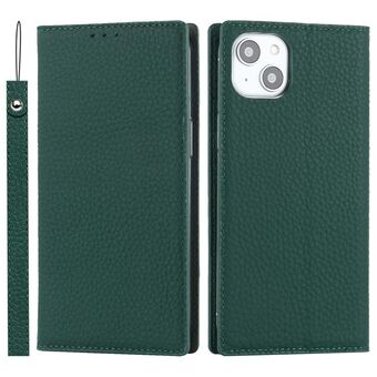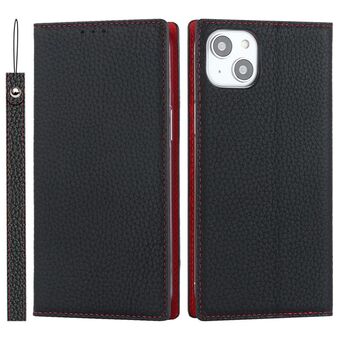 Θήκη τηλεφώνου από γνήσιο δέρμα με υφή λύτσι για iPhone 14 Plus (Μαύρο)