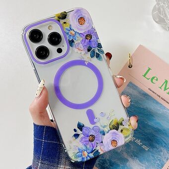 Θήκη τηλεφώνου MagSafe με διπλή πλαστικοποίηση και λουλούδια για iPhone 14 Plus (Μωβ)