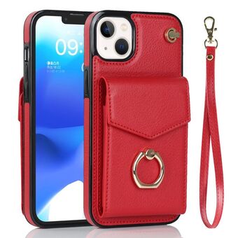 Θήκη τηλεφώνου από δέρμα για iPhone 14 Plus με πλευρική αγκράφα, διπλό λουρί χειρός (Σκούρο Πράσινο)