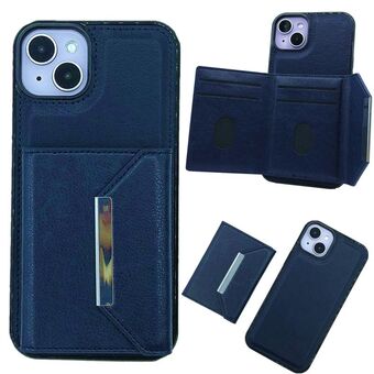 Θήκη τηλεφώνου για iPhone 14 Plus με μονόχρωμη μεταλλική αγκράφα και θήκες για κάρτες (Μπλε)