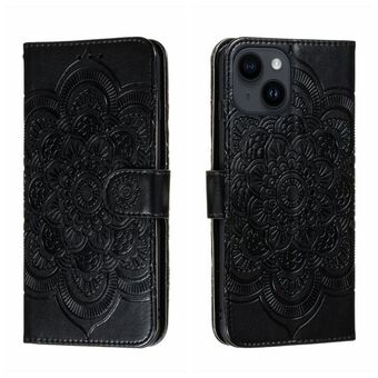 Θήκη τηλεφώνου δερμάτινη με ανάγλυφο Sun Mandala για iPhone 14 Plus (Κόκκινο)