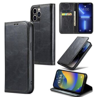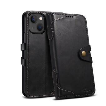 Θήκη τηλεφώνου Suteni από δέρμα με υφή μοσχαριού και αγκράφα για iPhone 14 Plus (Μαύρο) (Suteni)