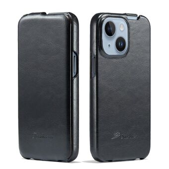 Θήκη τηλεφώνου κάθετης αναδίπλωσης από δερματίνη PU με υφή λαδιού και κεριού Fierre Shann για iPhone 14 Plus (Καφέ) (FIERRE SHANN)