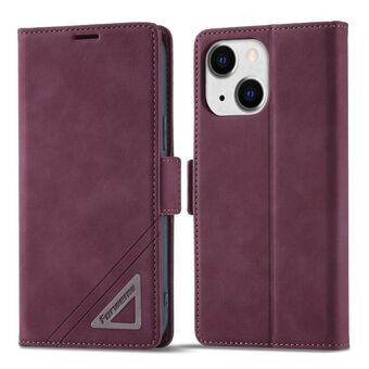 Θήκη δερμάτινη με σχέδιο μπρονζέ βαφής και τεχνολογία RFID για iPhone 14 Plus (Βιολέτες)