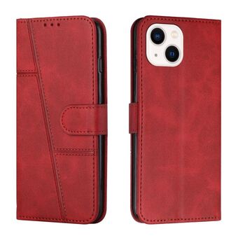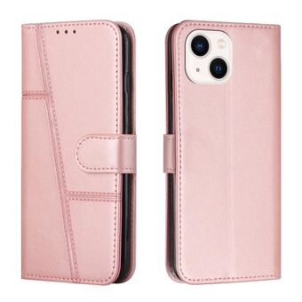 Θήκη τηλεφώνου για iPhone 14 Plus με ραφές, υφή μοσχαριού, αγκράφα και δέρμα (Ροζ)