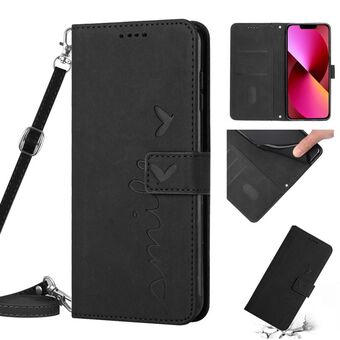 Θήκη τηλεφώνου από δέρμα με σχέδιο καρδιάς και αίσθηση δέρματος για iPhone 14 Plus με κορδόνι (Καφέ)