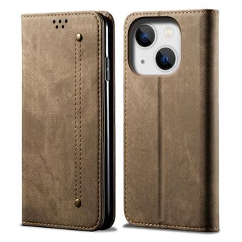 Θήκη τηλεφώνου από δέρμα με ανάγλυφη υφή τζιν για iPhone 14 Plus, σε casual στυλ (Μαύρο)