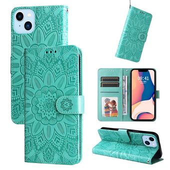 Θήκη τηλεφώνου δερμάτινη με ανάγλυφο ηλίανθο για iPhone 14 Plus (Πράσινο)