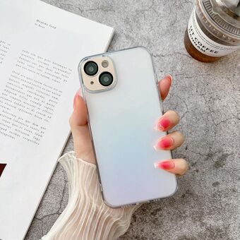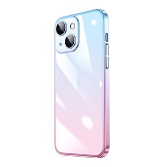 For iPhone 14 Plus Transparent Electroplated PC Gradient Phone Case (Pink Blue)