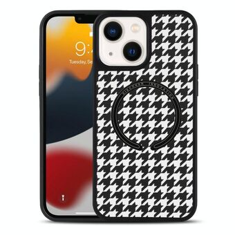 For iPhone 14 Plus Leather Texture MagSafe Magnetic Phone Case (Houndstooth)