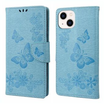 For iPhone 14 Plus Butterfly Embossed Horizontal Flip Leather Phone Case (Blue)