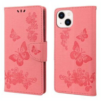 For iPhone 14 Plus Butterfly Embossed Horizontal Flip Leather Phone Case (Pink)