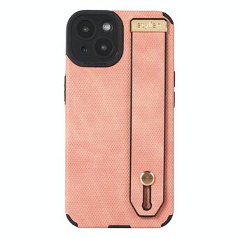 For iPhone 14 Plus Wrist Strap TPU Leather Phone Case(Pink)