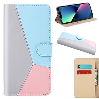 Θήκη τηλεφώνου από δέρμα με πτερύγιο για iPhone 14 Plus, με τριχρωμία ραφής (Γκρι)