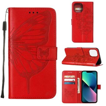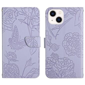 Θήκη τηλεφώνου από δέρμα με ανάγλυφο σχέδιο πεταλούδας για iPhone 14 Plus (Ανοιχτό Μωβ)