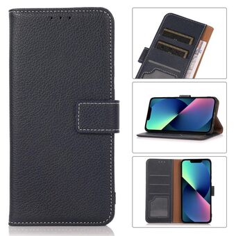 Θήκη τηλεφώνου οριζόντια, ανακλινόμενη, από γνήσιο δέρμα, ανθεκτική στα δακτυλικά αποτυπώματα για iPhone 14 Plus (Μαύρο)