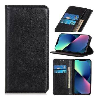 Θήκη τηλεφώνου από δέρμα με οριζόντιο άνοιγμα, με μαγνητική υφή Crazy Horse για iPhone 14 Plus (Μαύρο)