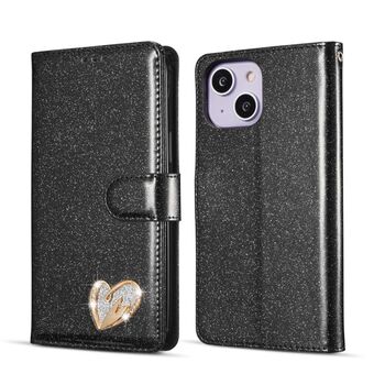 Θήκη τηλεφώνου για iPhone 14 Plus με γκλίτερ, σκόνη και δέρμα (Μαύρο)