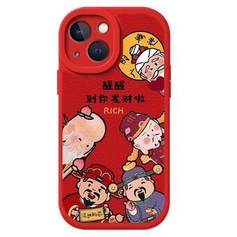 Θήκη κινητού τηλεφώνου πλήρους κάλυψης για iPhone 14 Plus με υφή δέρματος αρνιού, νέος σχεδιασμός για το νέο έτος (Γίνε πλούσιος)