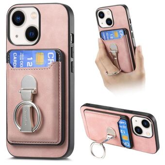 For iPhone 14 Plus Retro Folding Ring Holder Card Bag MagSafe Phone Case(Pink)