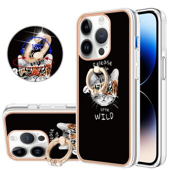 For iPhone 14 Pro Electroplating Dual-side IMD Phone Case with Ring Holder(Natural Growth)