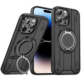For iPhone 14 Pro Max Rotating Ring Holder Magnetic MagSafe Phone Case(Black)