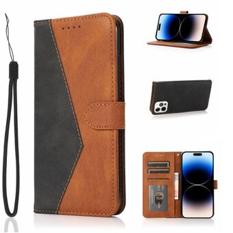For iPhone 14 Pro Max Dual-color Stitching Leather Phone Case (Black Brown)
