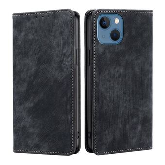 For iPhone 14 Pro Max RFID Anti-theft Brush Magnetic Leather Phone Case (Black)