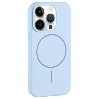 For iPhone 14 Pro Max Large Hole Camera MagSafe Liquid Silicone Full Coverage Phone Case(Blue)