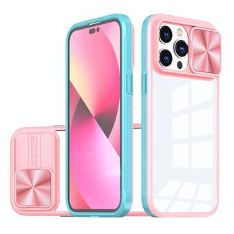 For iPhone 14 Pro Max 360 Full Body Sliding Camshield Phone Case(Pink Cyan)