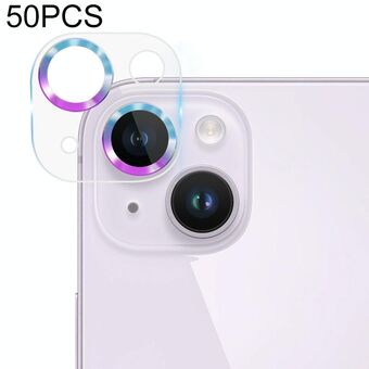 For iPhone 14 / 14 Plus 50pcs Tempered Glass CD Texture Back Camera Film(Colorful)