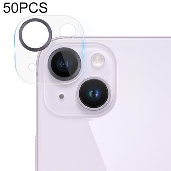 For iPhone 14 / 14 Plus 50pcs Tempered Glass CD Texture Back Camera Film(Black)