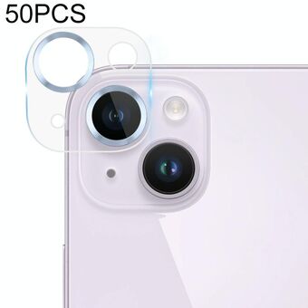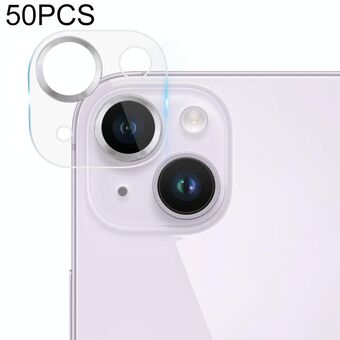 For iPhone 14 / 14 Plus 50pcs Tempered Glass CD Texture Back Camera Film(Silver)