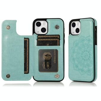 For iPhone 14 Plus Double Buckle Mandala Leather Wallet Back Cover Phone Case(Green)