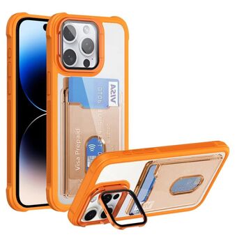 For iPhone 14 Pro Max Card Bag Holder Acrylic Hybrid TPU Phone Case(Orange)