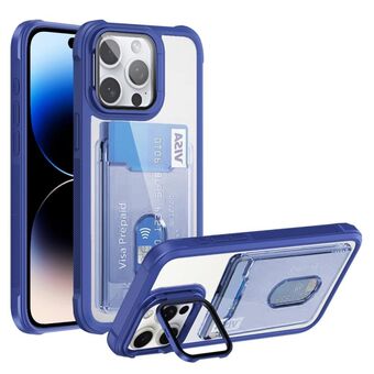 For iPhone 14 Pro Max Card Bag Holder Acrylic Hybrid TPU Phone Case(Blue)