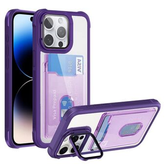 For iPhone 14 Pro Max Card Bag Holder Acrylic Hybrid TPU Phone Case(Purple)