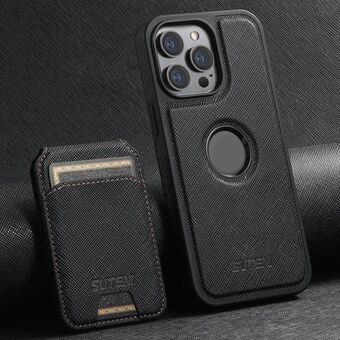 For iPhone 14 Pro Max Suteni M2 Cross-Grain MagSafe Vertical Card Back Phone Case(Black) (Suteni)