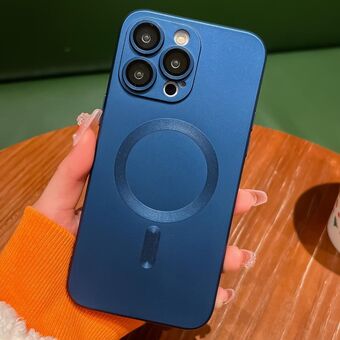 For iPhone 14 Pro Max Metallic Paint Magsafe Liquid TPU Phone Case(Dark Blue)