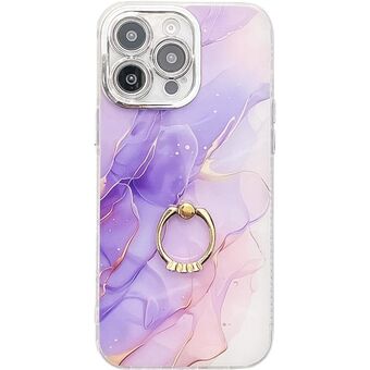 For iPhone 14 Pro Max Electroplated Marble Texture Ring Holder Phone Case(Light Purple S6)