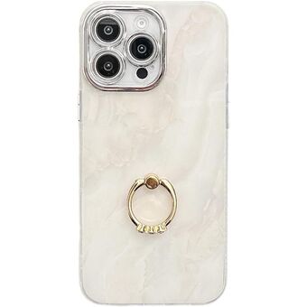For iPhone 14 Pro Max Electroplated Marble Texture Ring Holder Phone Case(White S8)
