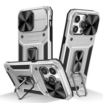 For iPhone 14 Pro Max Camshield Robot TPU Hybrid PC Phone Case(Silver)