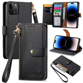 For iPhone 14 Pro Max Love Zipper Lanyard Leather Phone Case(Black)