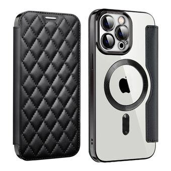 For iPhone 14 Pro Max Shield Magsafe RFID Anti-theft Rhombus Leather Phone Case(Black)