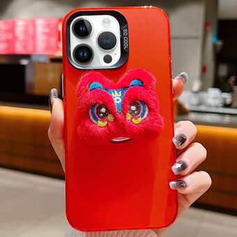 For iPhone 14 Pro Max New Year Lion Dance Plush Doll Phone Case(Red Back Red Lion)