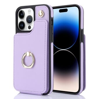 For iPhone 14 Pro Max YM007 Ring Holder Card Bag Skin Feel Phone Case(Purple)
