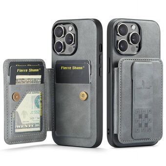 For iPhone 14 Pro Max Fierre Shann Oil Wax Cow Leather Card Holder Back Phone Case(Grey) (FIERRE SHANN)