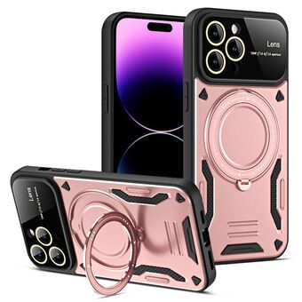 For iPhone 14 Pro Max Large Window MagSafe Holder Phone Case(Rose Gold)