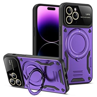 For iPhone 14 Pro Max Large Window MagSafe Holder Phone Case(Purple)