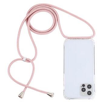 Θήκη προστασίας κινητού τηλεφώνου για iPhone 14 Pro Max, διαφανές ακρυλικό, με αερόσακο για απορρόφηση κραδασμών και λουρί (Χρυσορόδινο).